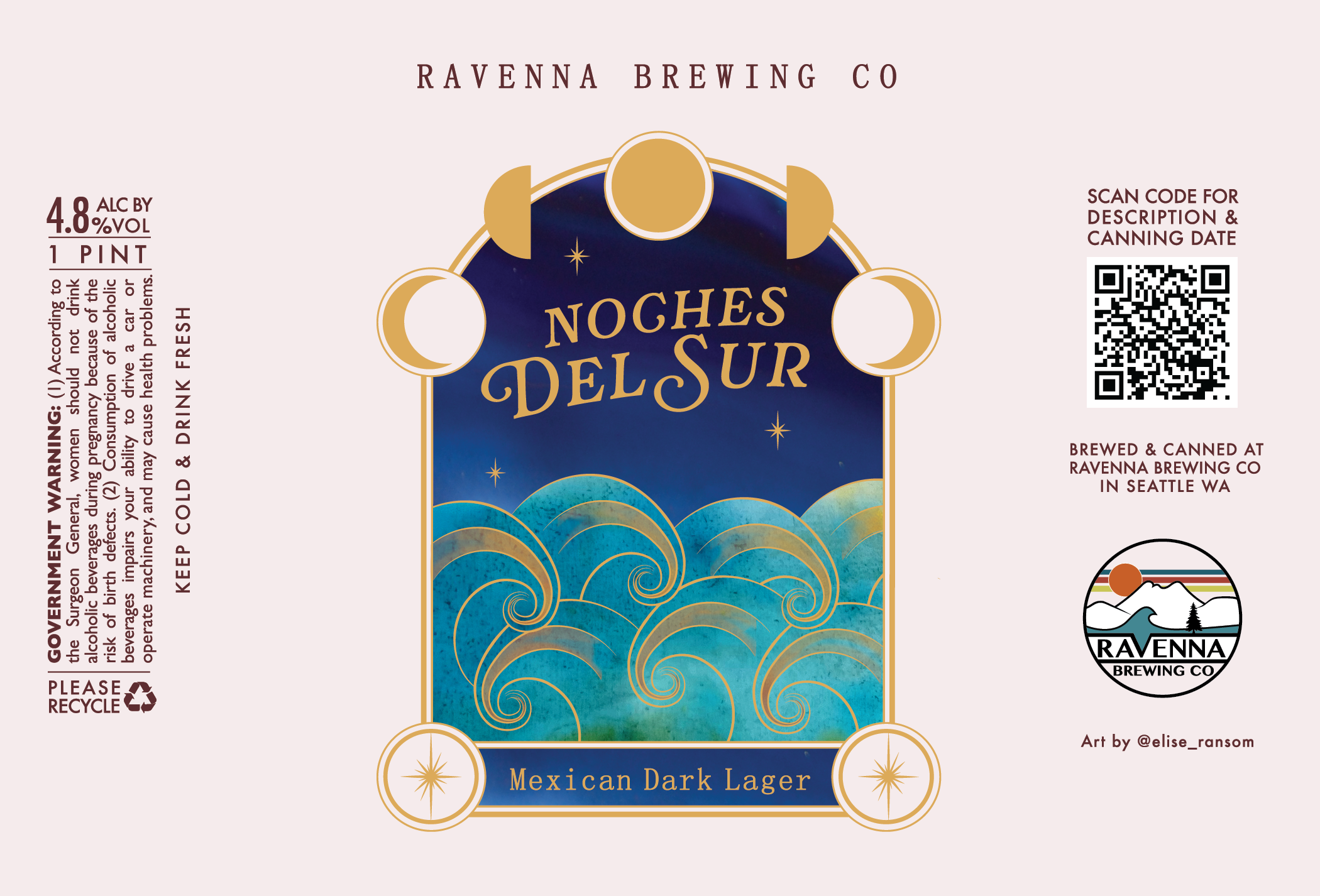 Noches del Sur is inspired by the rich tradition of Mexican dark lagers. The complex and engaging malt profile is complemented by a subdued floral hoppiness. Subtle malt notes of bread crust and caramel, with even subtler noble hop spice accompany the dry and satisfying finish.
